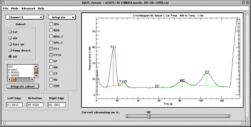 Current chromatogram slider acts as described in HATS chrom CONFIG mode above, scrolling through available chromatograms.